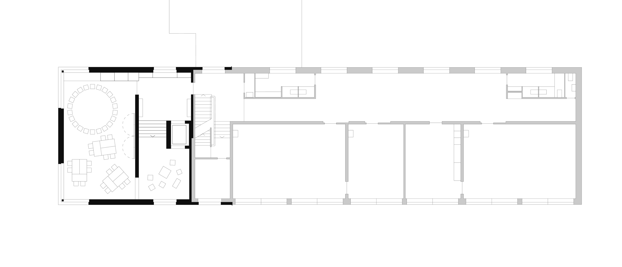 Der neue Kopfbau macht aus der Not eine Tugend: Die Grunddisposition mit der um ein halbes Geschoss versetzten Eingangsebene wird auf die darüberliegenden Gruppenräume übertragen. Diese liegen ein paar Stufen über den Hauptebenen und zeichnen sich so als ruhige Orte des Rückzugs aus. Der Kindergartenbereich im Tiefparterre wiederum profitiert von einer kleinen Aussenarena, welche zwischen dem Innenraum und der Umgebung vermittelt. Neben den drei Unterrichtseinheiten befindet sich im Dachraum ein grosszügiges Lehrpersonenzimmer mit angehängter Mediathek. Der neue, zentral positionierte Lift bedient alle Ebenen und macht die Schule hindernisfrei.