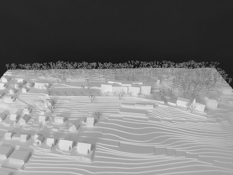 Eine Hauptqualität des Schlössliheimes Pieterlen ist unbestritten der Ort selbst: Am Südhang des Jurafusses liegend, thront der Hauptteil der Anlage von weither gut sichtbar auf einer Gelände-Empore und profitiert dabei von der optimalen Besonnung und einem herrlichen Panorama. Die Umgebung des Perimeters wird von drei Hauptelementen bestimmt, welche sich parallel zu den Höhenlinien von Norden nach Süden aneinanderreihen: Wald, Terrasse, Rebhang. Diese Elemente möchten wir festhalten, reparieren, weiterentwickeln und schärfen. Die Lage und Ausdehnung des Hauses limitieren wir deshalb auf den Bereich des Terrassenplateaus.